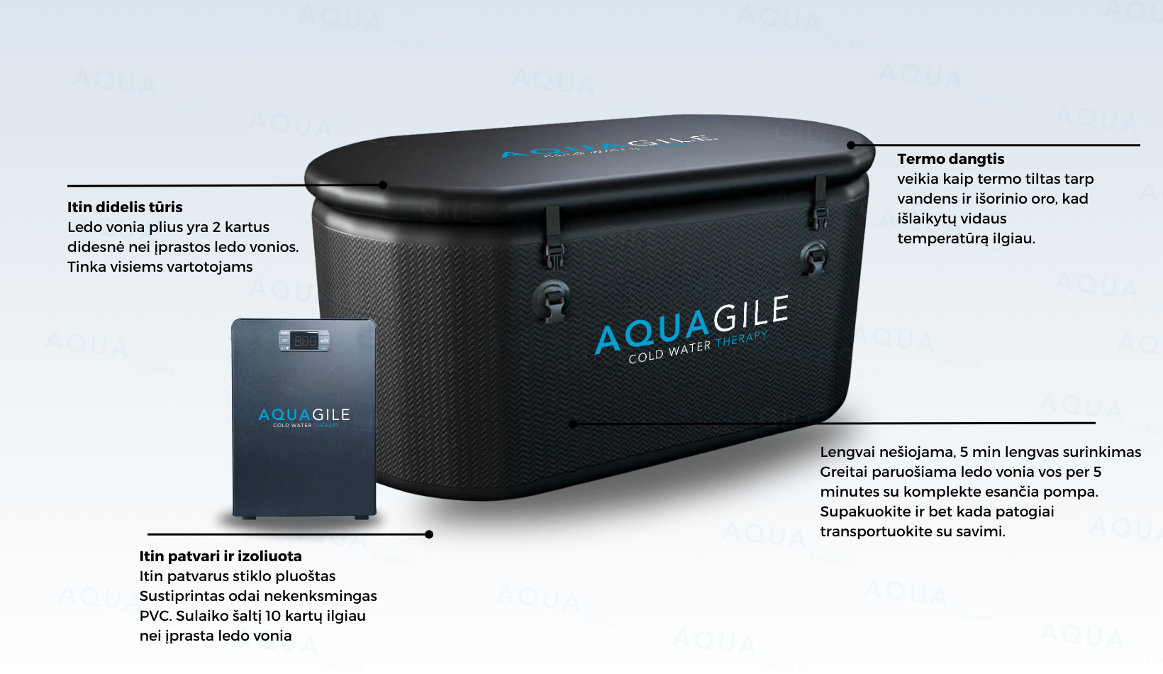 Odpoveď: Ľadové vane AQUAGILE majú 5-vrstvovú izolačnú technológiu, aby voda zostala dlhšie studená.